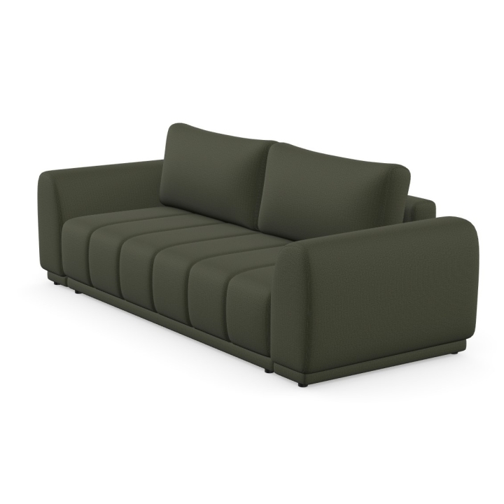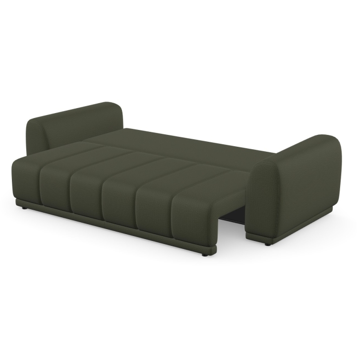 The model is equipped with a DL folding mechanism, which, when the seat is extended and the backrest folded, creates an even sleeping surface measuring 200x150 cm. This solution proves its worth in everyday use, especially when the furniture is also used as a place for night rest. An additional advantage is the bedding container, hidden in the body.