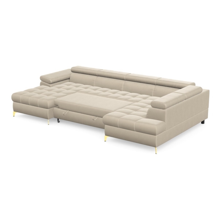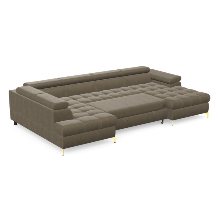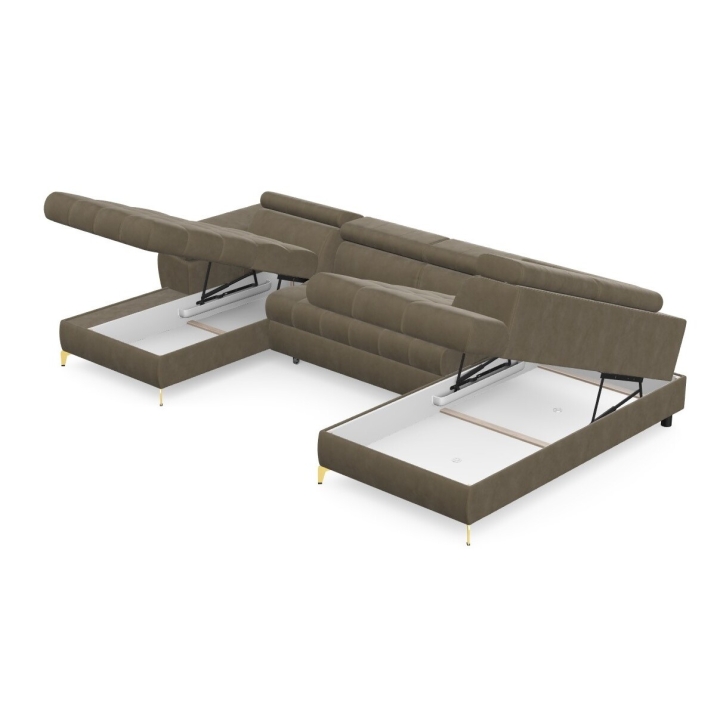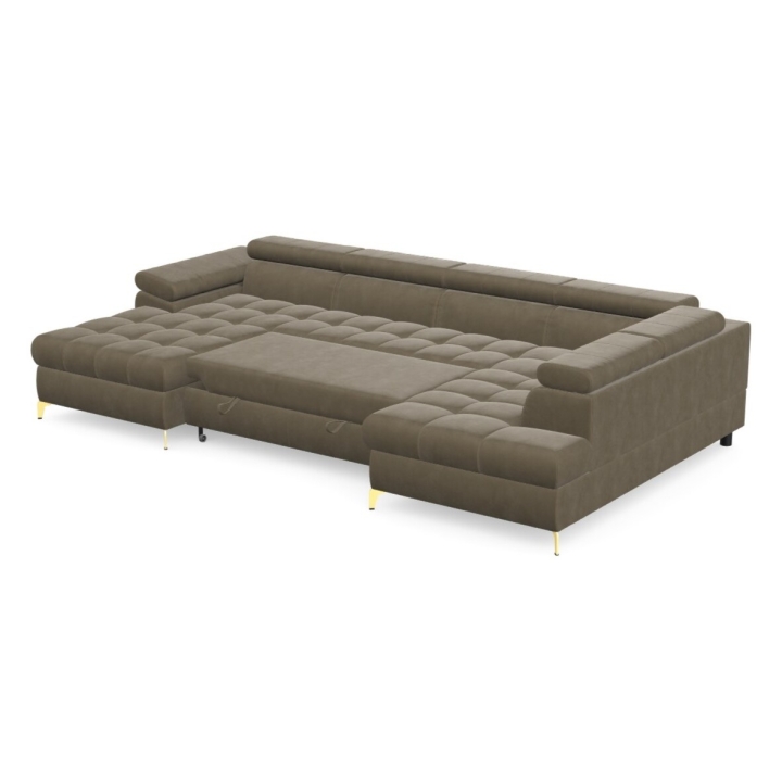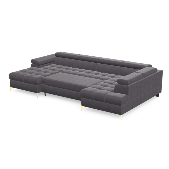 The corner sofa is equipped with a dolphin-type sleeping function, which allows you to easily obtain a sleeping surface of 268x125 cm. The mechanism is based on extending the lower part and lifting the mattress, which works well as an additional place for a night's rest. This solution is quick to operate and integrated into the form of the furniture in a way that does not affect its everyday appearance.