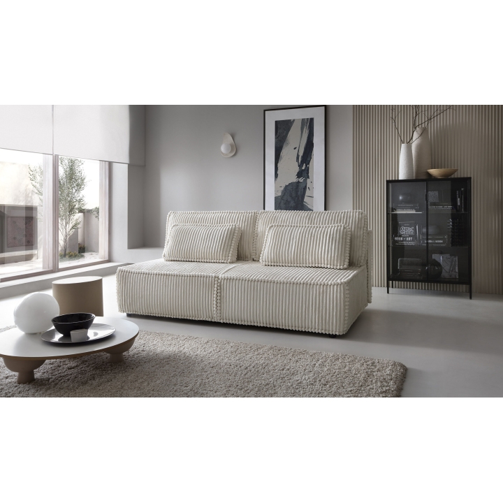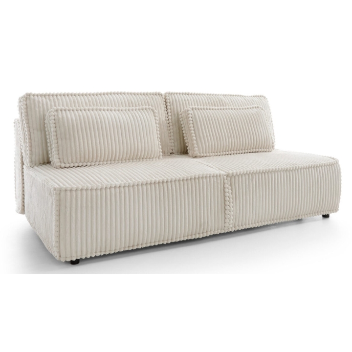 The seat of the sofa is 200 cm wide, 42 cm high and has a depth of 66 cm to the backrest cushion and 92 cm to the backrest, allowing for a comfortable position. The filling of the seat and backrest with profiled corrugated spring and polyurethane foam achieves a balance between softness and stable support. Such a solution translates into comfort not only during momentary relaxation, but also during a night's rest.