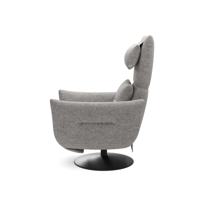 The Roy model is available with both manual and electric reclining systems, allowing the mechanism to be tailored to individual expectations. Thanks to an advanced configurator, the upholstery can be customised to suit personal aesthetic preferences. A wide selection of fabrics with various textures, colours and properties makes it easy to integrate the Roy armchair into the intended interior concept while offering full visual personalisation.