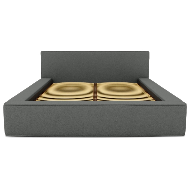 The mattress frame is designed with durability and comfort in mind. The standard version of the frame - with a wooden base and spring actuators - ensures free air circulation, protecting the mattress from moisture. Given the variety of mattresses available on the market, including the heavier spring models, the manufacturer recommends considering the purchase of a metal frame with 1000 N gas lifters, available at a small additional cost. Such a frame is characterised by increased strength, the actuators effectively prevent sinking of the frame even with heavy mattresses, it facilitates access to the bedding container, which significantly increases the comfort of everyday use.