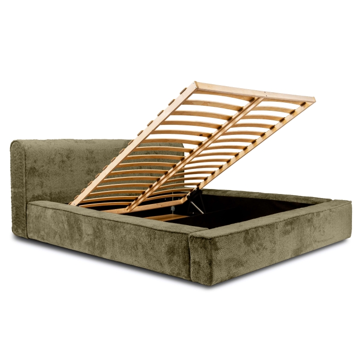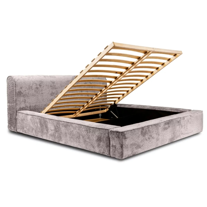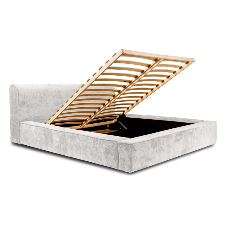 The mattress frame is designed with durability and comfort in mind. The standard version of the frame - with a wooden base and spring actuators - ensures free air circulation, protecting the mattress from moisture. Given the variety of mattresses available on the market, including the heavier spring models, the manufacturer recommends considering the purchase of a metal frame with 1000 N gas lifters, available at a small additional cost. Such a frame is characterised by increased durability, the actuators effectively prevent the frame from dropping even with heavy mattresses, it facilitates access to the bedding container, which significantly increases the comfort of everyday use.