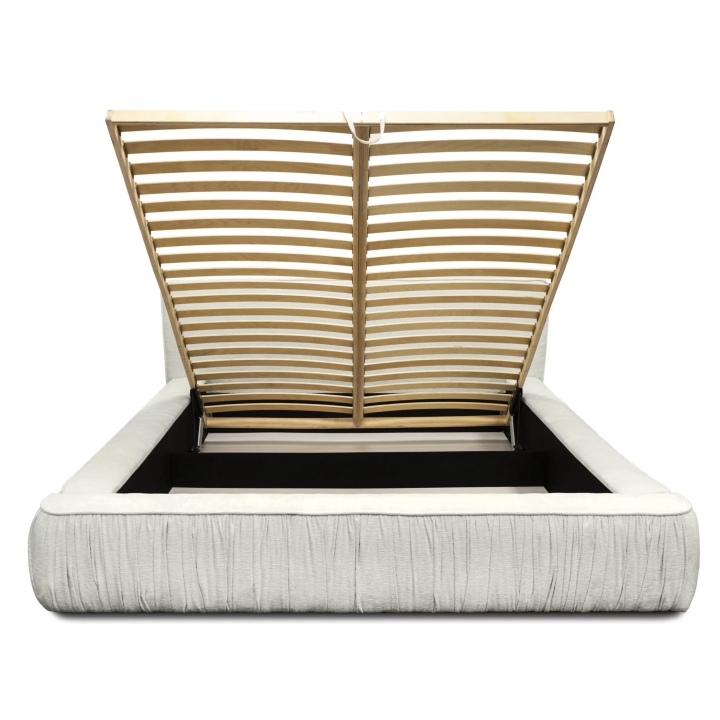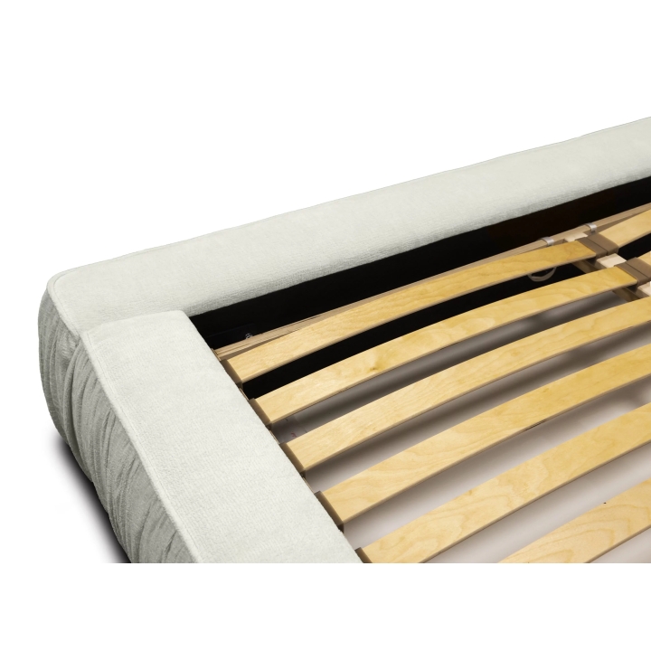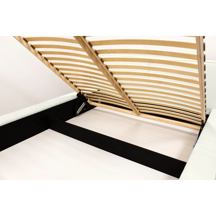 The standard version of the frame - with a wooden substructure with spring lifts - ensures free air circulation, protecting the mattress from moisture. Due to the wide range of mattresses available on the market, including spring-loaded models with higher weight, the manufacturer recommends the option of purchasing a metal frame with 1000 N gas lifts, available at a small additional cost. (selectable in the configurator) Such a frame is characterised by greater strength and the actuators effectively prevent the frame from sinking together with the mattress, even with heavy mattresses. This facilitates free access to the bedding container, which increases the convenience of everyday use.