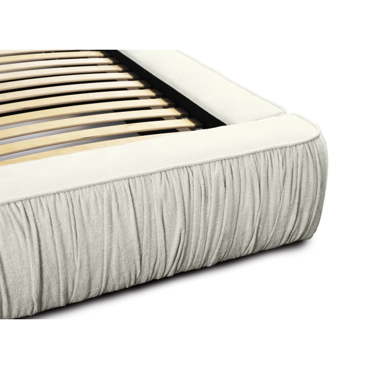 The NAOMI 160 upholstered bed from the Quarto manufacturer with storage box and frame is a unique piece of furniture that provides comfort and a special accent to any bedroom. Its wide frame, covered with soft fabric , is an eye-catcher. In addition, the striking crease on the frame and the low sides of the design, which almost touch the floor, give it a subtle character while allowing air to circulate.