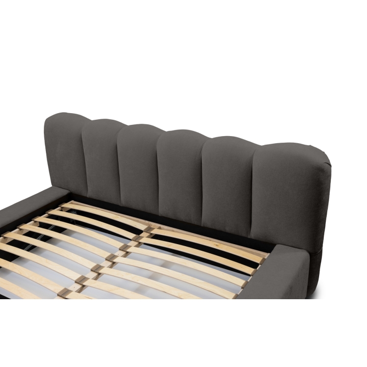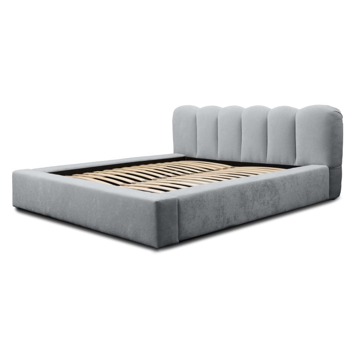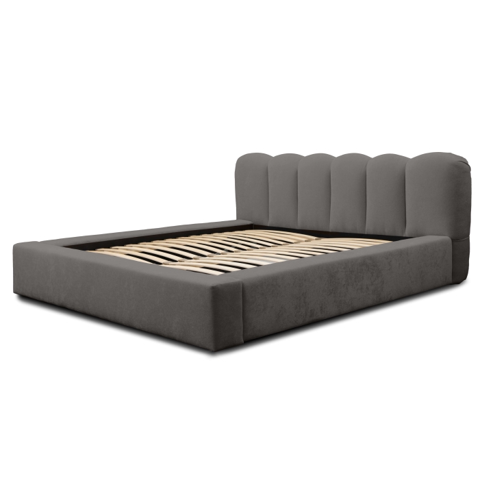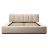 The DALLAS bed is distinguished by subtle vertical stitching, which gives it a unique character. With a large sleeping surface of 180x200 cm and a total width of 220 cm and a length of 240 cm, it is ideal for spacious bedrooms. With a wide range of fabrics to choose from, the piece of furniture can be easily matched to a variety of interior designs to create a cohesive and comfortable interior. In addition, this model features a solid, soft headrest with a height of 86 cm, which provides comfort when sitting or relaxing with a book. The furniture is equipped with a container that opens from the front, providing additional storage space for bedding. It has a solid bottom made of HDF board. The mattress sinks 7cm into the box.