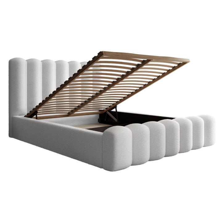 The Amore bed has a sleeping surface of 160x200 cm and its overall dimensions are 175 cm wide and 240 cm long. The bedding container is based on an HDF bottom, which increases the solidity of the entire structure. The location of the container in the lower part of the frame, allows for easy storage of textiles, keeping the bedroom tidy. The front-opening container guarantees convenient access to its contents.