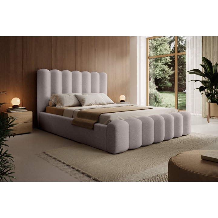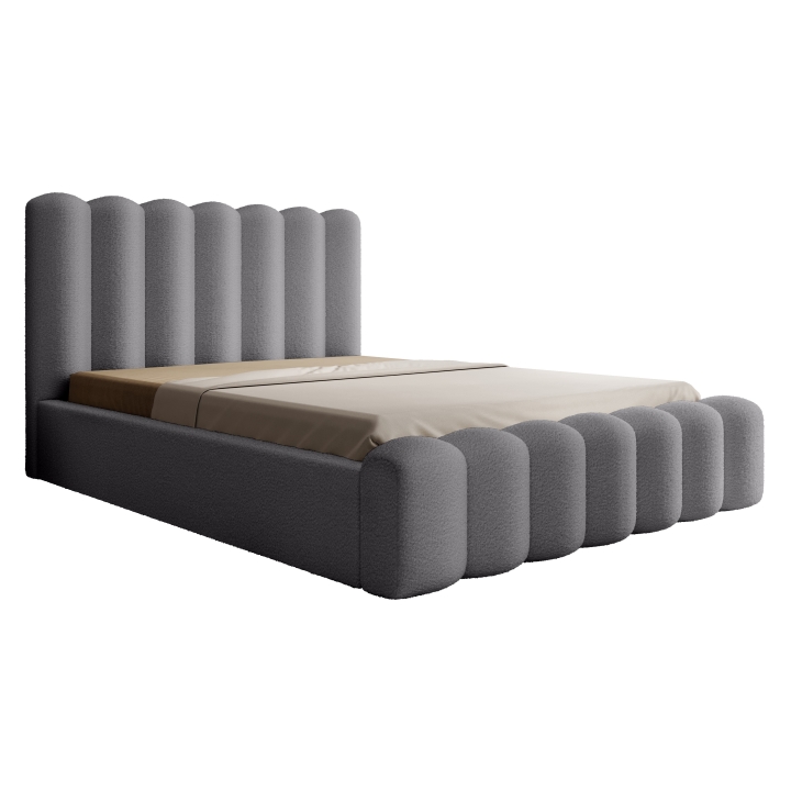 The furniture is characterised by ingeniously designed vertical stitching, which introduces a distinct decorative element to the interior. Thanks to the wide range of available fabric colours, it is possible to perfectly match a variety of design concepts, reflecting personal aesthetic preferences. Designed with maximum comfort in mind, the bed features a high, soft headboard 120 cm high and 15 cm thick, which provides excellent support whether sitting or relaxing with a book. The mattress is embedded 7cm deep in the box.
