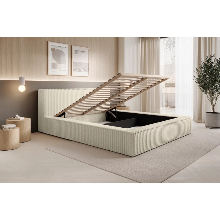The Melody 160x200 upholstered bed with a container by the Quarto manufacturer is a unique proposal for those looking for a piece of furniture that combines modern design with the highest comfort of use. Its subtle, rectangular form and upholstery in a delicate corduroy pattern exude lightness, perfectly fitting into a variety of design concepts.