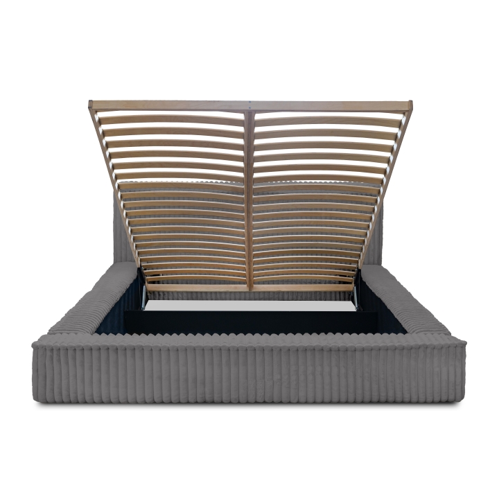 The lift mechanism, which allows for easy lifting of the frame, makes access to the stored items convenient and quick, which definitely increases the comfort of everyday use. The standard version of the frame - with a wooden base and spring actuators - ensures free air circulation, protecting the mattress from moisture. Taking into account the variety of mattresses available on the market, including spring models with higher weight, the manufacturer recommends the purchase of a metal frame with 1000 N gas lifts, available for a small additional fee (selection in the configurator). Such a frame is characterised by increased durability, the cylinders effectively prevent the frame from dropping even in the case of heavy mattresses, and it facilitates access to the bedding container, which significantly increases the comfort of daily use.