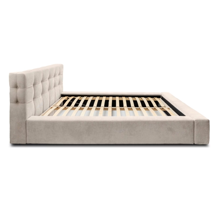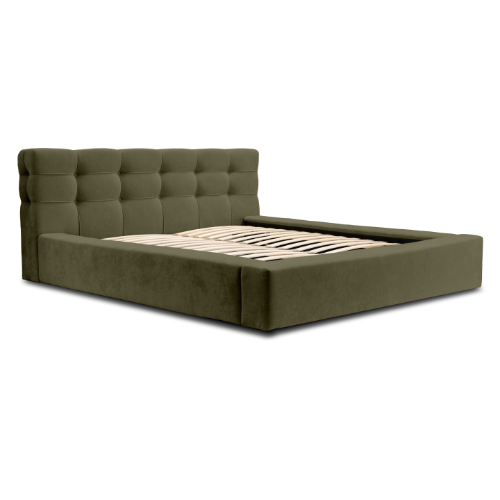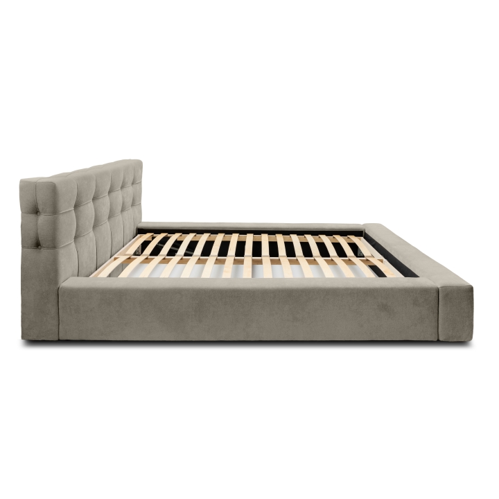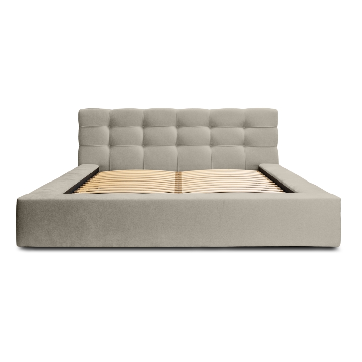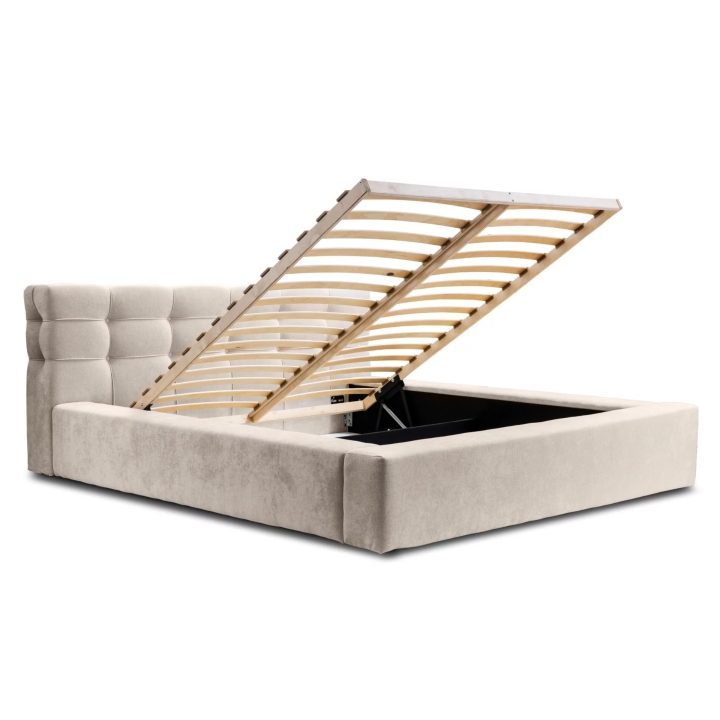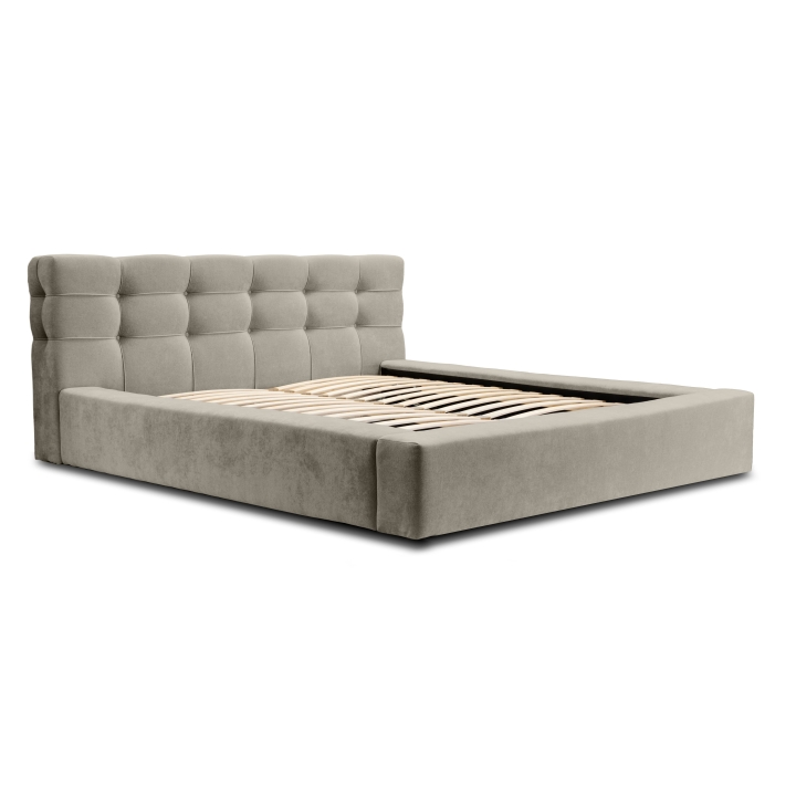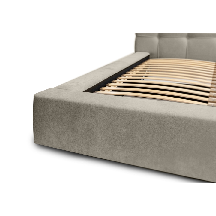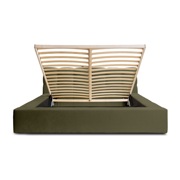 The standard version of the frame - with a wooden base and spring actuators - ensures free air circulation, protecting the mattress from moisture. Taking into account the variety of mattresses available on the market, including spring models with higher weight, the manufacturer recommends the purchase of a metal frame with 1000 N gas lift, available for a small additional fee (selectable in the configurator). Such a frame is characterised by increased durability, the actuators effectively prevent the frame from dropping even with heavy mattresses, and it facilitates access to the bedding container, which significantly increases the comfort of daily use.