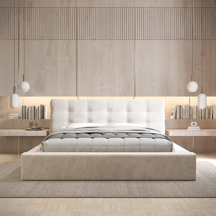 The GRACE 180x200 upholstered bed with container by the Quarto manufacturer is a combination of excellent comfort and modern form that will bring an atmosphere full of peace and relaxation to the bedroom. Its simplicity in design promotes tranquillity, making the space cosier. The excellent workmanship ensures that every detail contributes to the overall comfort.