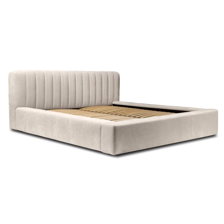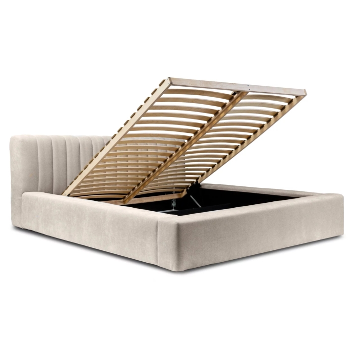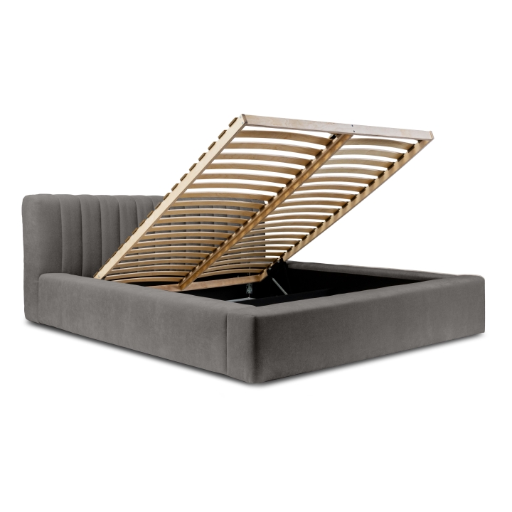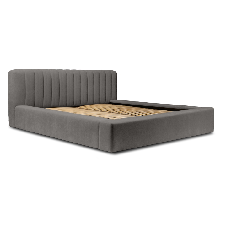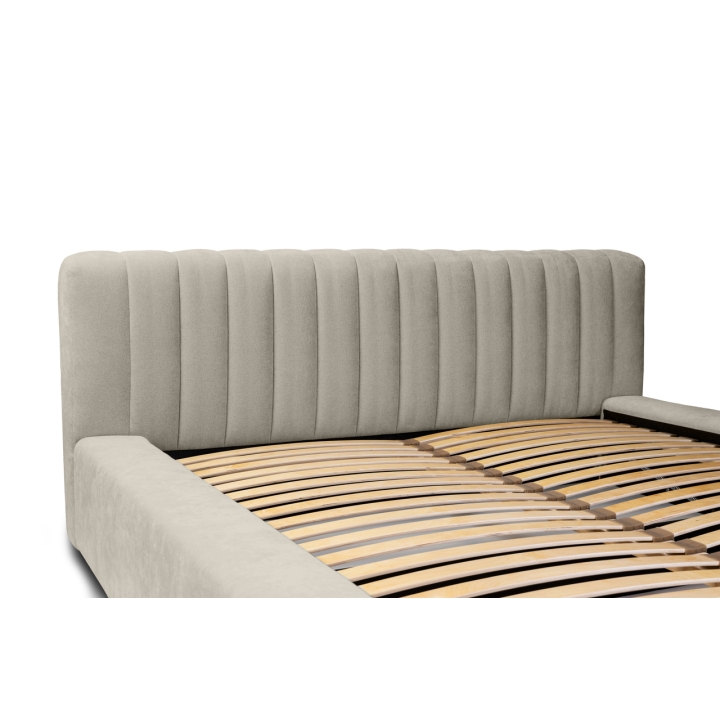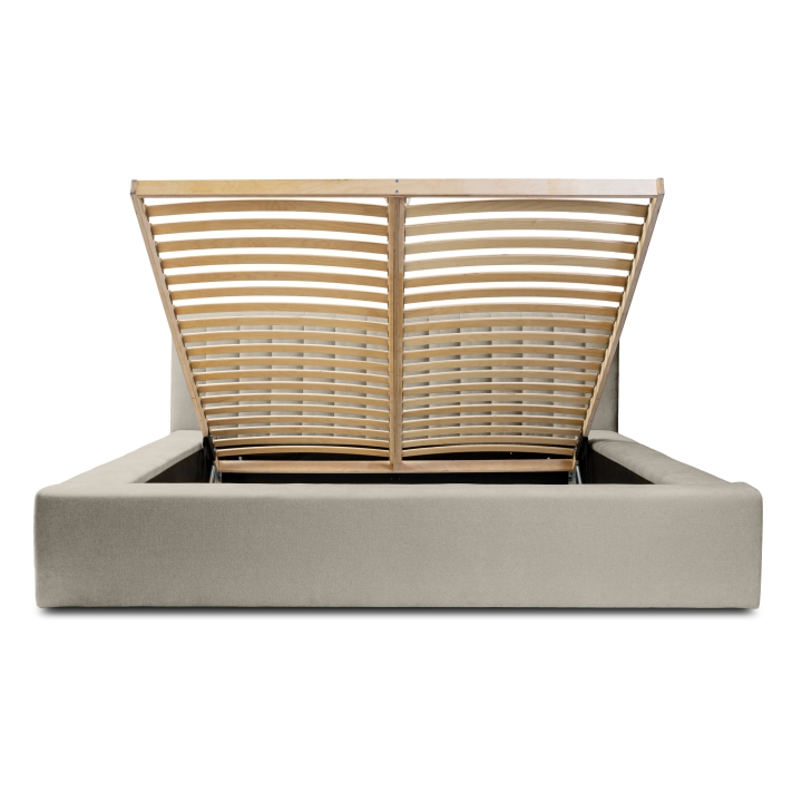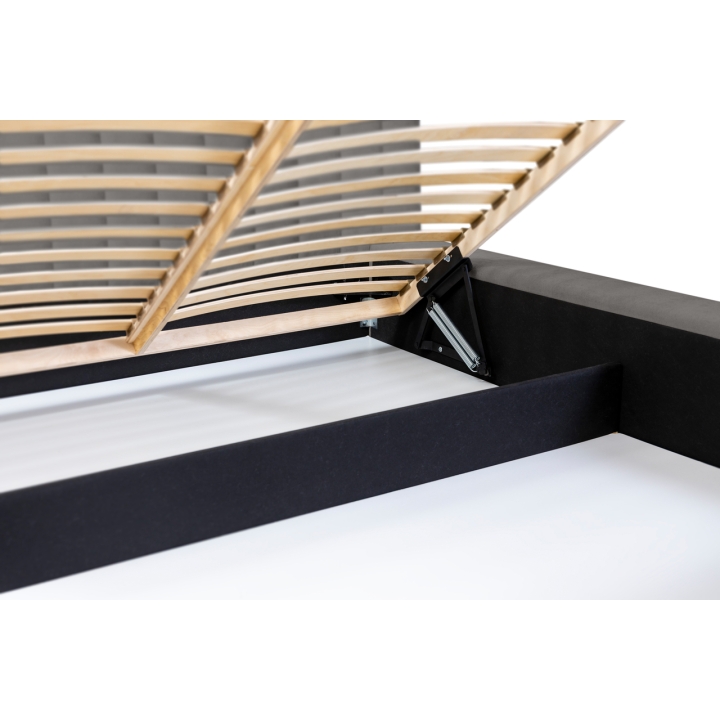 The standard version of the frame - with a wooden base and spring actuators - ensures free air circulation, protecting the mattress from moisture. Taking into account the variety of mattresses available on the market, including spring models with higher weight, the manufacturer recommends the purchase of a metal frame with 1000 N gas lifts, available for a small additional fee (selection in the configurator). Such a frame is characterised by increased durability, the cylinders effectively prevent the frame from dropping even with heavy mattresses, and it facilitates access to the bedding container, which significantly increases the comfort of daily use.