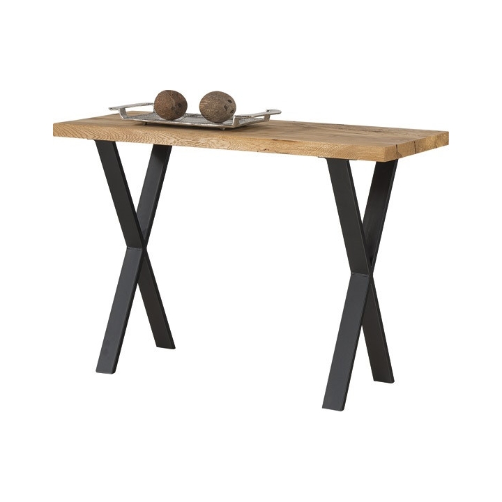 The console from the Simple collection by Meble Remo is a practical addition to interiors decorated in loft style. The distinctive feature of this piece of furniture is certainly the base of the structure, which consists of two X-shaped metal legs. This element will definitely draw the attention of your guests. The console's top is made of the highest quality oak wood, guaranteeing durability and many years of use. This piece of furniture is also a multifunctional product that can be used both as a desk, a dressing table, and will also be great in the hallway as a place to put away your keys or display your decorations.