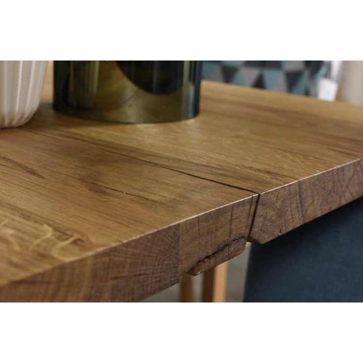 A functional table is an indispensable piece of equipment in a dining room or living room. The folding table from the Soho collection by Meble Remo is an ideal proposal. This modern piece of furniture is equipped with two 60 cm long extending inserts. Thanks to this your table after unfolding will reach a length of 300 cm! The furniture will provide plenty of space for celebrating holidays, family meetings or other special events. The Soho table top is made of solid oak, with the structure of the wood visible. The exposed natural scratches, cracks and knots emphasise the beautiful character of the wood and give the interior a unique atmosphere. The structure of the furniture is set on four stable legs, which additionally look great.