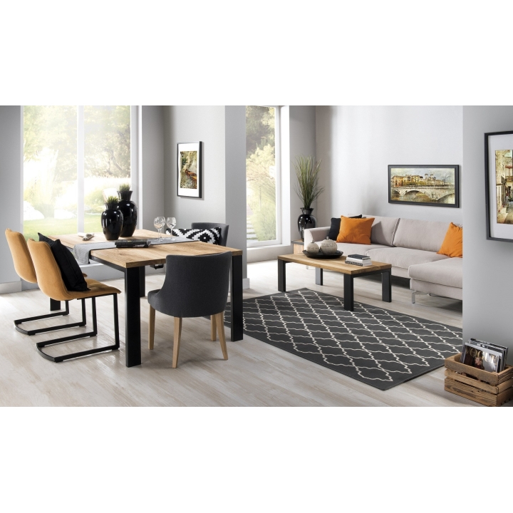 The table from the Nesto collection by Remo Furniture is an extremely stylish piece of furniture that will allow you to arrange a functional and elegant space in your dining room. The Nesto table measures 200/260/320 x 100 cm and is designed to seat eight people. It will be perfect for larger special events. The furniture was made from the highest quality materials, guaranteeing durability and aesthetic appearance for many years of use. The undoubted ornament of the table is its base, which consists of four metal legs in a shade of black semi-matte. The entire structure looks extremely stylish and introduces a unique character to the interior.
