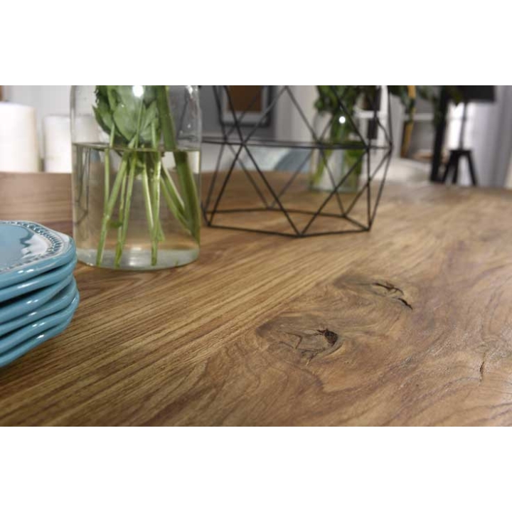 The table from the Salvador collection by Meble Remo is created for those who appreciate unique loft-style furniture. The presented table is the so-called "White Raven" among furniture. The table measures 210 x 120 and is designed for eight people. A characteristic feature of the product is certainly the visible structure of the wood with its natural cracks, scratches and knots. Attention is also drawn to the base of the piece of furniture, which impresses with its decidedly unusual form. The Salvador table will prove perfect in the dining room. Its original form, the juxtaposition of natural oak wood with metal creates a piece of furniture so unique that no one will pass by it indifferently.