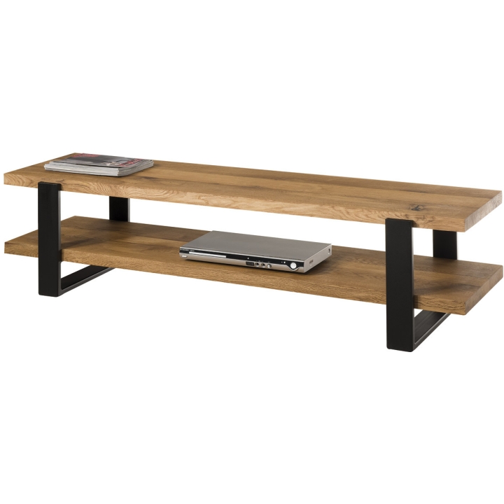 Are you dreaming of a stylish and modern RTV cabinet that will perfectly arrange the entertainment corner in your living room? RTV cabinet from the Udine collection by Meble Remo is a hit! The furniture delights not only in terms of aesthetic qualities, but also in terms of functionality. The cabinet has two practical shelves, on which you can place a collection of discs, a set-top box, a TV or display decorations. The top of the furniture is made of solid oak, while the base is made of two inverted U-shaped metal legs. The cabinet from the Udine collection presents a minimalist form , which will enable you to create a modern arrangement that will give your interior a unique charm.