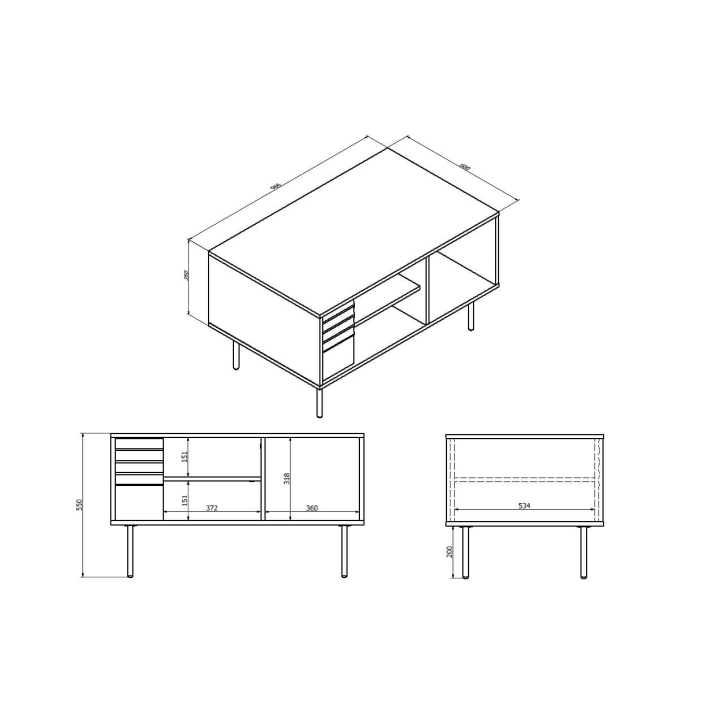 The black front features deep milling that creates a textured, three-dimensional look. Its dimensions make the table suitable as a central coffee table or a side table next to the sofa. Delivered in three packages, the ARD-ST96 is easy to transport and assemble.