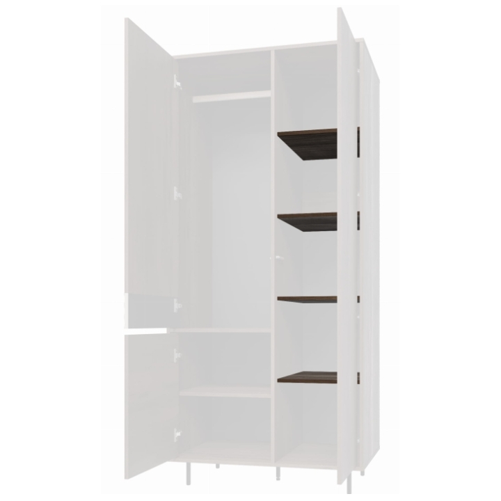 An optional 4-shelf set EBR-SZ90P is available for purchase. These additional shelves can replace one of the clothing rails, creating extra storage for folded clothes and improving layout flexibility.