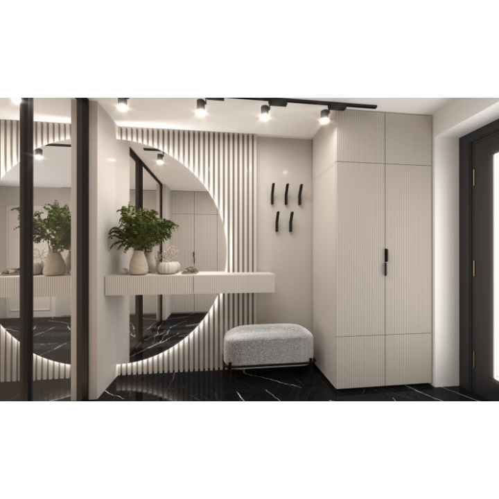Once attached to the wardrobe, the combined structure becomes a cohesive vertical storage set, ideal for walk-in closet systems or bedroom clothing organization, making full use of the room’s height to store seasonal clothing or less frequently used items in a neat, quiet, user-friendly enclosure. Each door is equipped with soft-close hinges, ensuring smooth, silent closing without impact noise.