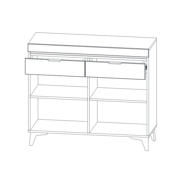 The Restol Baldur BDK-2 chest of drawers is a compact, high-capacity storage unit built for smaller living rooms, bedrooms, or dining spaces. It features 2 top drawers on full-extension ball-bearing slides and 2 lower cabinets, each with 1 internal shelf for better organization. The cabinet doors open sideways, and the hinge side can be reversed during installation to suit your room layout.