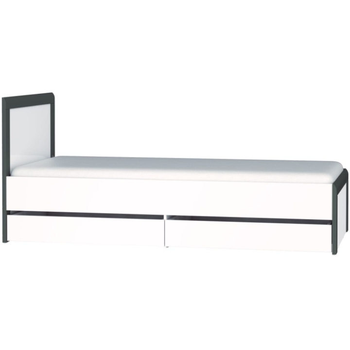 The bed offers a comfortable 90×200 cm sleeping surface designed for one person. Its design is based on a modern contrast – white combined with anthracite accents, subtly highlighting the lines of the furniture.