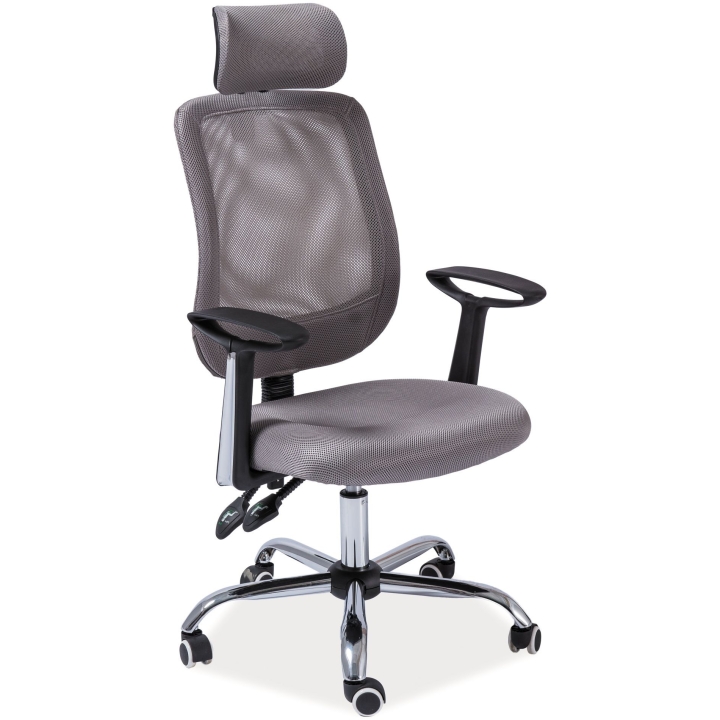 fabric membrane / mesh, grey, basic mechanism with possibility to lock the backrest in any position, backrest up and down adjustment - 5 cm, headrest up and down adjustment - 5 cm, rubber wheels, max load 100 kg