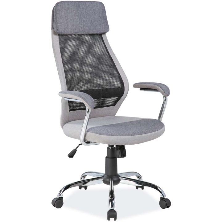 fabric, grey, / mesh, black, TILT mechanism, plastic wheels, max load 120kg