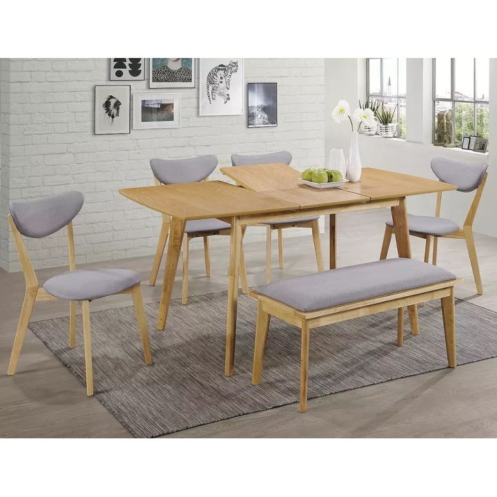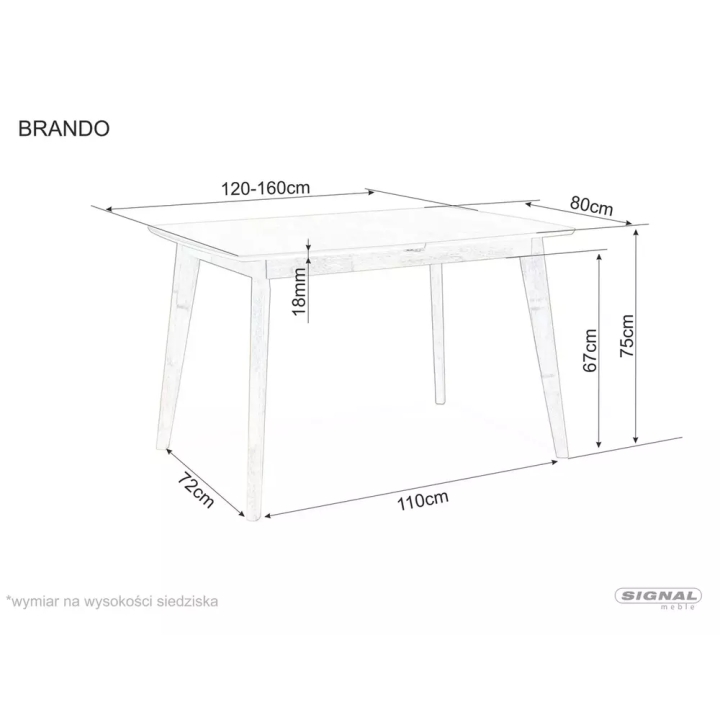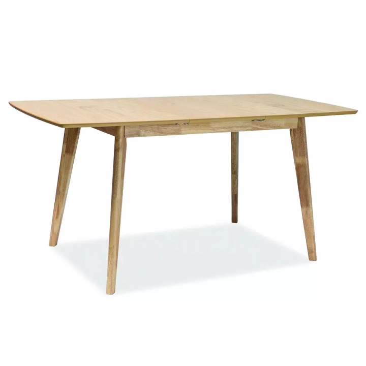 The Brando light oak table is an elegant folding piece of furniture that is perfect for the dining room or living room. It has a top made of MDF covered with natural veneer and its frame is made of oak-coloured wood, which ensures durability and an aesthetic appearance. Thanks to the fold-out function, the length of the table can be increased from 120 cm to 160 cm, allowing it to comfortably accommodate up to 8 people. Its classic design and versatile colours fit in perfectly with various interior design styles.