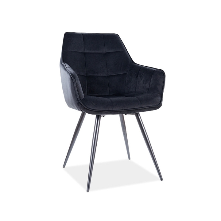TheLilia Velvet chair by Signal is an elegant piece of furniture that fits perfectly in modern and design interiors. The seat and backrest of the chair are upholstered with Velvet fabric, which is pleasant to the touch, and the sides are contoured. The chair's legs are made of metal painted black and angled to guarantee stability and visual appeal.