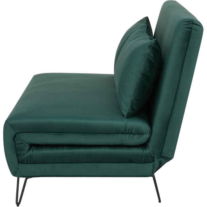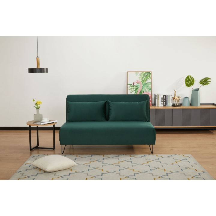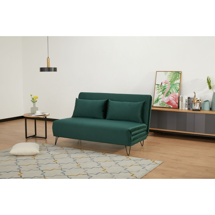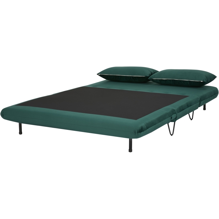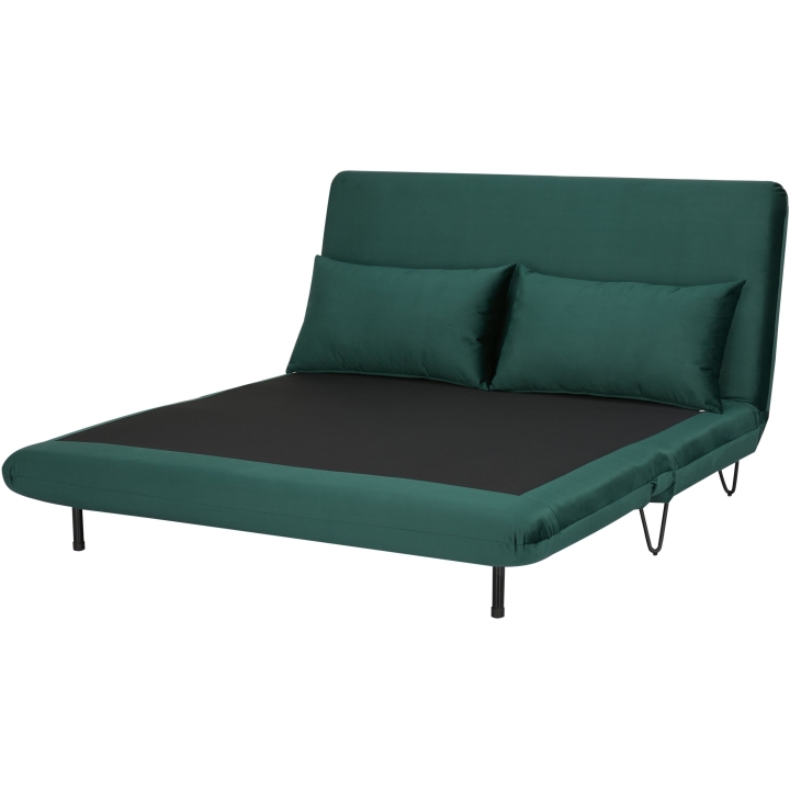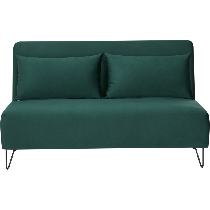 The Zenia so fa in green is a two-seater sofa by Signal that has a sleeping function. It is made of pleasant to the touch fabric, which gives the sofa an elegant and modern look. The sofa has comfortable seats and backrests that provide comfort while sitting and sleeping. With its sleeping function, the Zenia sofa is ideal for those who need extra sleeping space for guests. The green colour gives the sofa a fresh and modern look that fits in perfectly with interior design trends.