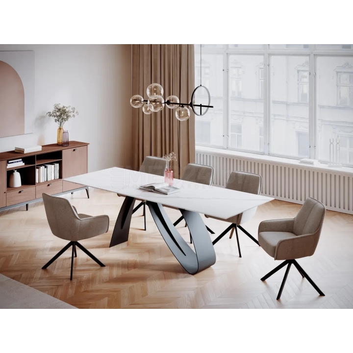 Discover elegance and comfort with the Notti chair in light beige 31 from manufacturer Signal. This unique chair has been designed with modern interiors in mind, perfect for the living room or dining room. The chair in Brego fabric not only looks sensational, but also provides seating comfort thanks to the pocket springs in the seat, which adapt to the shape of the body. The metal frame in black mat adds a modern touch to the chair, and the 180-degree swivel seat with a return function to its original position makes it extremely comfortable to use. Notti Brego is an ideal choice for dining rooms, offices or public spaces where design and comfort go hand in hand. The maximum load capacity of the chair is 120 kg.