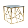 Bench, top: smoked tempered glass, frame : metal , colour: gold.