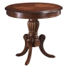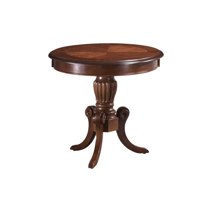 Stylish bench Nevada D by renowned Signal Meble, which will meet the expectations of people who are keen on unconventional, elaborate decorative accessories. Nevada D bench fits perfectly into the decor of elegant living rooms or offices arranged in Art Deco or Baroque style. The bench can be used as a designer coffee table or a place for a flower pot or a classic living room decoration. Its subtle circular top, combining MDF and veneer in a dark walnut shade, is attached to a fancy wooden base, which impresses with its beautiful decoration and four legs that ensure adequate stability of the furniture.