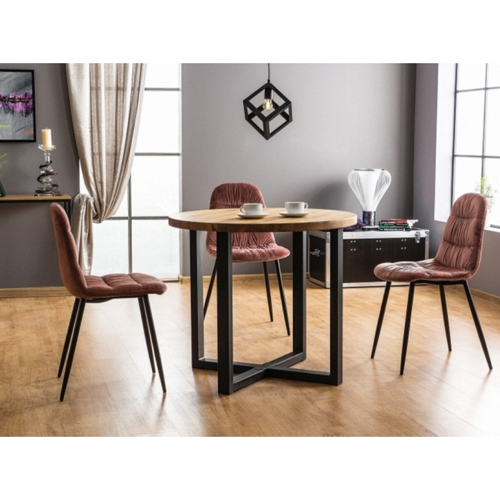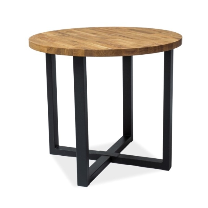 Table,table top: solid oak wood, frame: metal, colour: natural oak / black