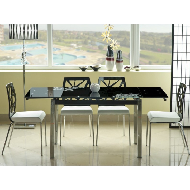 Gd017 grey/chrome table 110(170)x74 SignalWid: 42.00, Dep: 42.00, Hgt: 51.00.