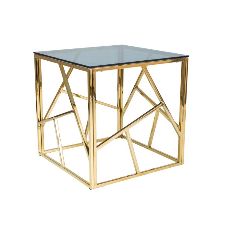 Bench, top: smoked tempered glass, frame : metal , colour: gold.