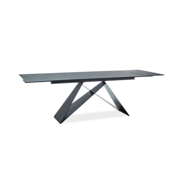 Table, top: tempered glass, stone effect, frame: metal , colours: black/black matt.