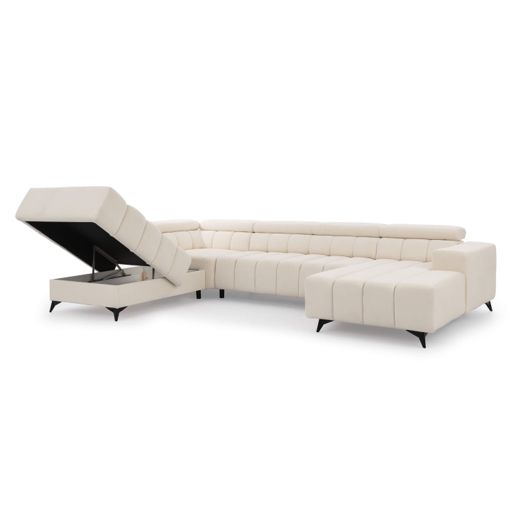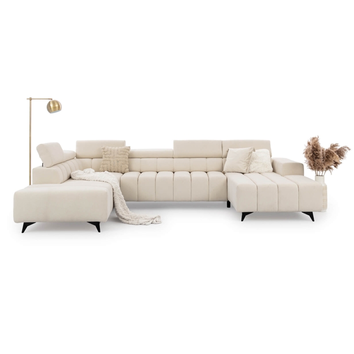 While it has no recline mechanism, the adjustable headrests make it possible to set the backrest height according to personal preference. Measuring 356 cm in width, 234 cm in depth, and 95 cm in height, the Ragusso U serves as the centerpiece of any living room — ideal for gatherings, movie nights, and everyday relaxation.