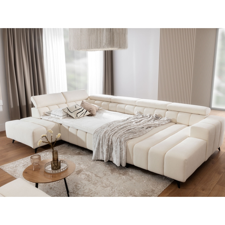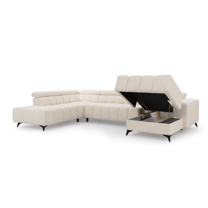 The Ragusso U corner sofa is a spacious U-shaped model designed for large living rooms. Both the seat and backrest are filled with VP foam, providing durable support and long-lasting comfort. The structure maintains its resilience even with daily use, offering plenty of room for family and guests.