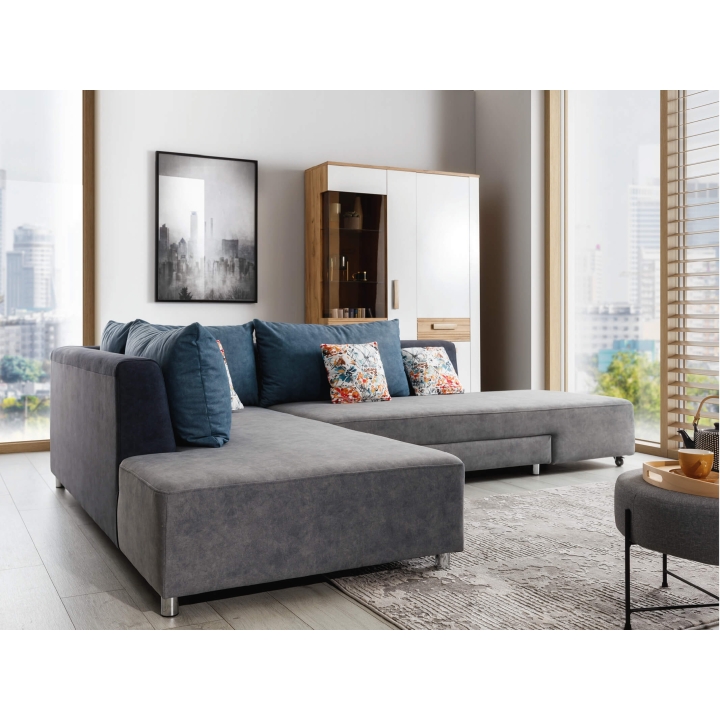 Split L combines a pull-out bed system, storage, and durable construction in one design. It can serve as both a daily seating area and an additional sleeping option when required.