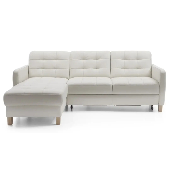 The Elio 2.5QF-1D(1)S corner sofa from SweetSit is the ideal solution for those looking for a compact corner sofa with a sleeping function that offers a choice of side - left or right. With a modern look and practical solutions such as a bedding container, this corner sofa will be perfect for any living room, combining comfort with functionality.