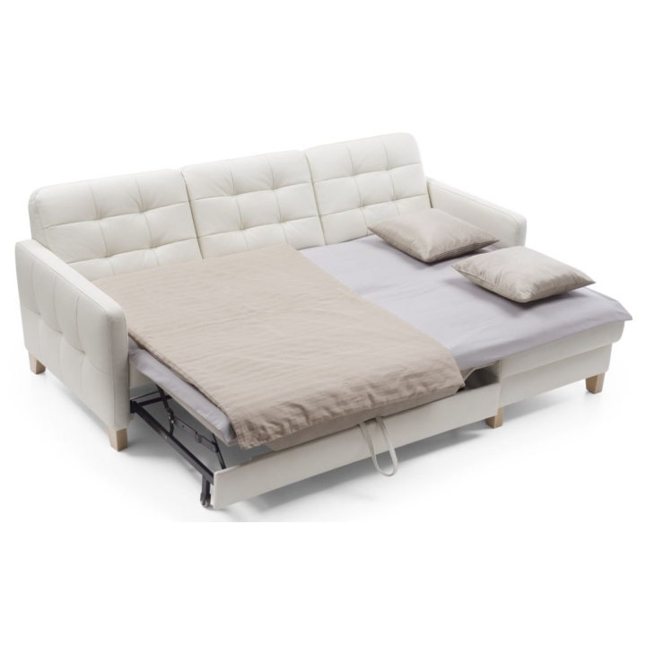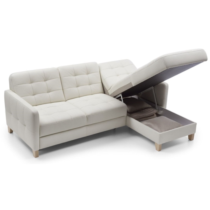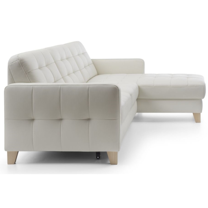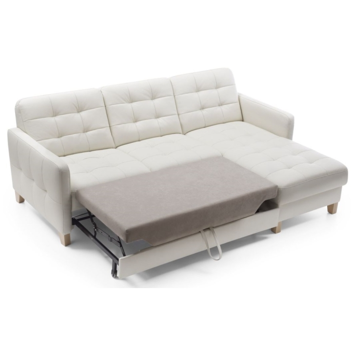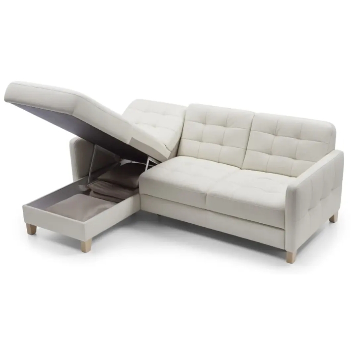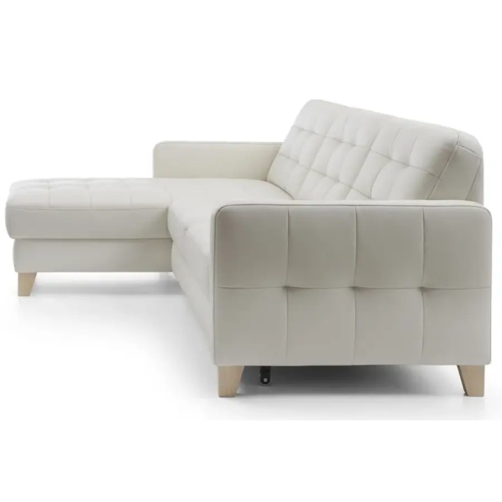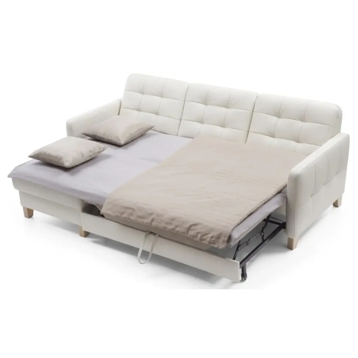 The Elio 2.5QF-1D(1)S corner sofa is equipped with a "dolphin" type sleeping function, which allows it to be easily and quickly converted into a 124 x 194 cm sleeping area. In addition, the corner sofa has a practical bedding container, allowing you to store duvets and cushions, saving space in your wardrobe.