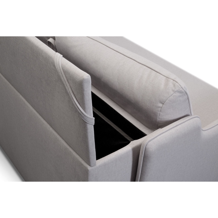 The Sol 2(140)SFF sleeper sofa also has a bedding container, making it even more versatile. The bedding container is located on the back of the sofa and allows you to store pillows, a duvet, a blanket or a sheet. A sofa with a container is a great advantage in small spaces where additional storage is lacking. The container opens easily and offers plenty of space for textiles, making the Sol 2(140)SFF sofa particularly appreciated by those living in studio flats and small flats.