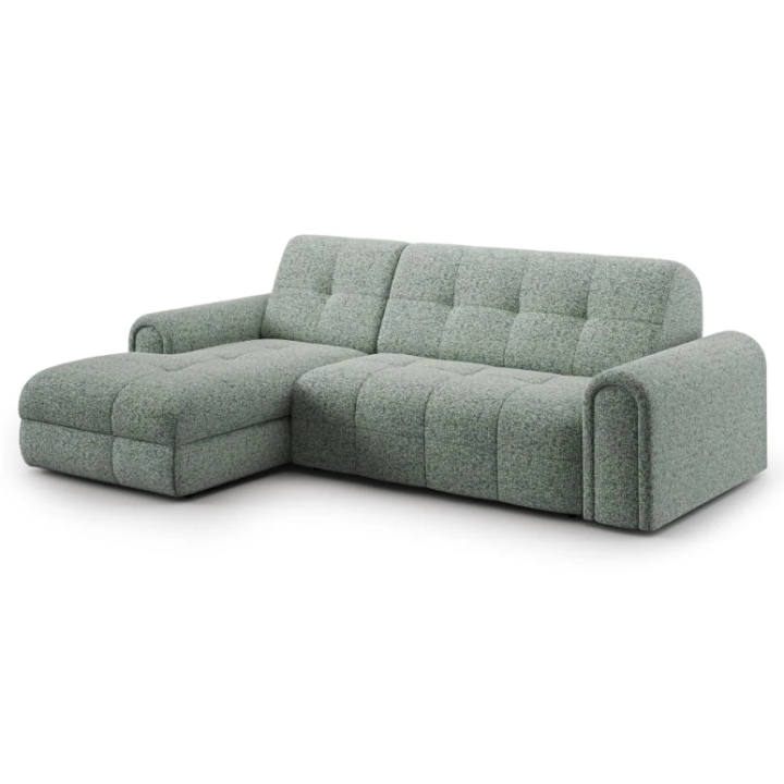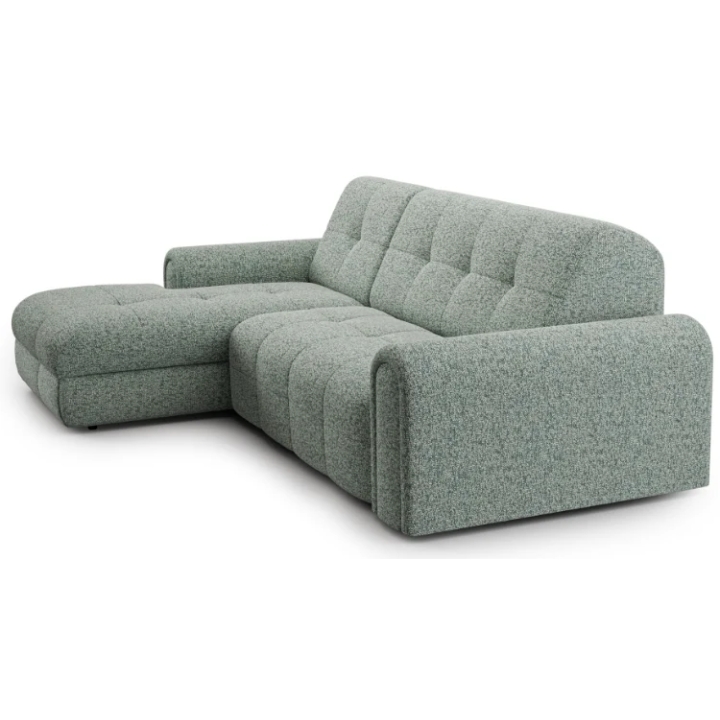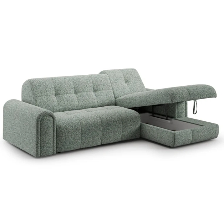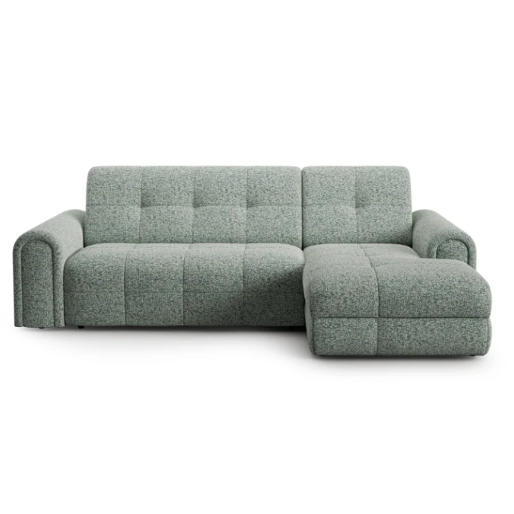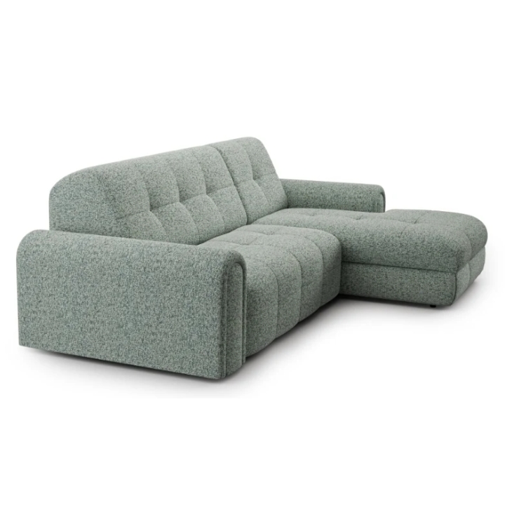 The dimensions of the Cloud corner sofa are 266 cm wide, 186 cm deep and 91 cm high. The seat depth ranges from 63 cm to 120 cm, depending on the degree of extension, and the seat height is 46 cm. The sleeping area when unfolded is 120 x 210 cm, providing a comfortable sleep for two people. In addition, the furniture has a bedding container, making it easy to store duvets and cushions, keeping the living room tidy.