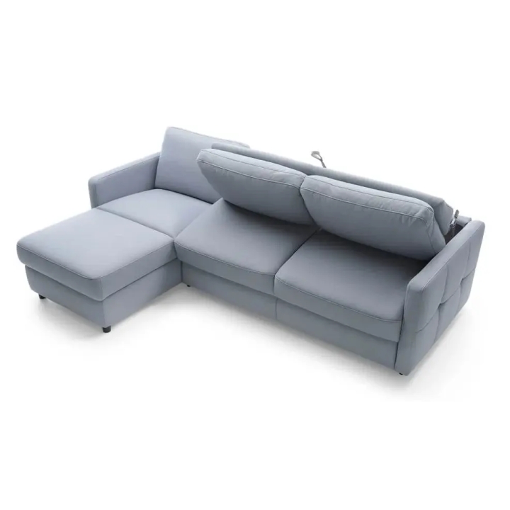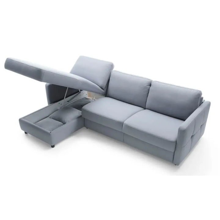 An additional advantage of the corner sofa is the bedding container located in the chaise longue. This practical solution allows you to store bedding, blankets or cushions, which is particularly useful in smaller flats where every centimetre of space counts. A bedding container in a corner sofa with a sleeping function is an element that increases the functionality of the furniture and makes it easier to keep the living room tidy.