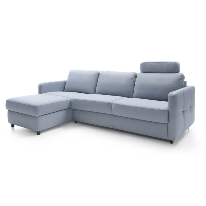 The choice of upholstery fabric is another advantage of this corner sofa with a sleeping function. Thanks to the wide range of available fabrics, everyone can match the appearance of the furniture to their taste and interior style. It is also worth noting the possibility of buying a headrest, which increases the comfort of using the corner sofa.