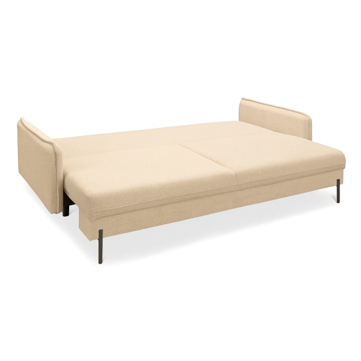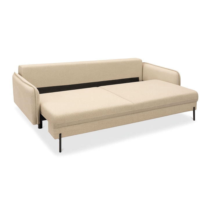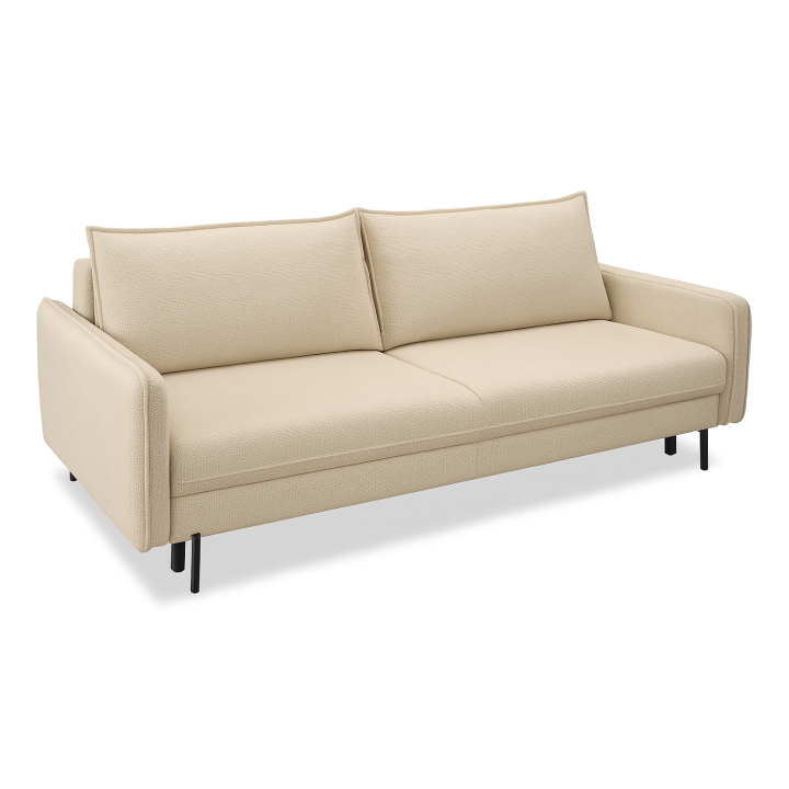 The seat is filled with polyurethane foam and corrugated springs, which together provide stable and comfortable support. On the other hand, the loose backrest cushions filled with silicone inserts increase comfort during everyday use. The DL type sleeping function mechanism allows for quick and intuitive unfolding, and the 150 x 198 cm sleeping surface will work perfectly as an extra bed for occasional overnight stays. The sofa is also equipped with a bedding container, so you can easily store a duvet, blanket or pillows.