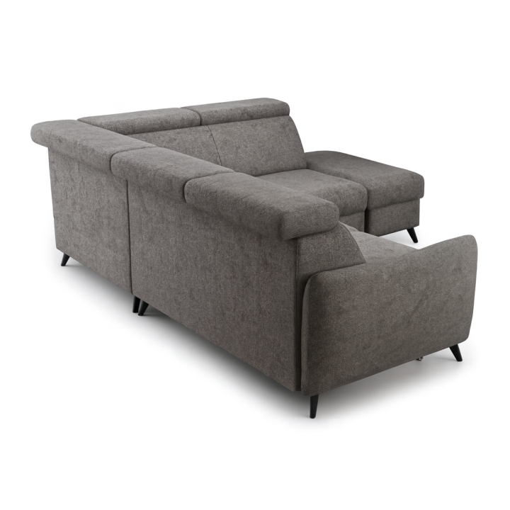 Equipped with a sleeping function , the corner sofa easily transforms into a bed with a sleeping surface of 125 x 196 cm, providing a comfortable sleep for guests. The movable headrestsallow you to adjust the seating position to suit your individual needs, allowing you to fully relax after a long day.