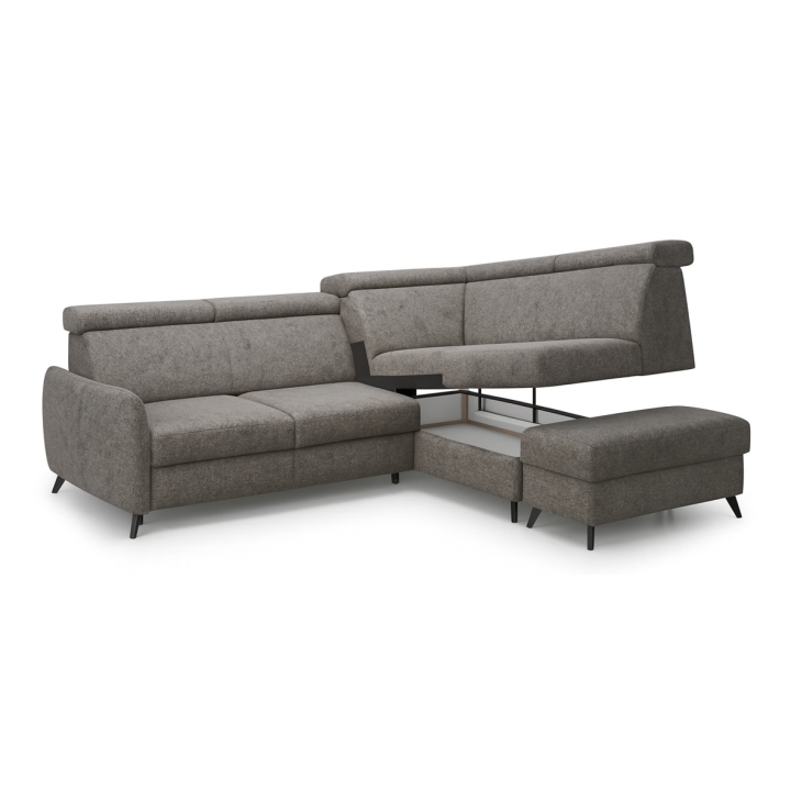The seat filling of polyurethane foam and corrugated spring guarantees excellent support and comfort for years of use. The Comfy corner sofa also has a bedding container for easy storage of extra cushions, blankets or bedding.